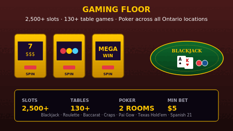 - Broad gaming selection: 2,500+ slots, 130+ tables, poker at two Ontario venues