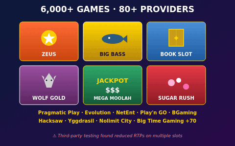 - Massive game library (6,000–7,300+) from 80+ providers