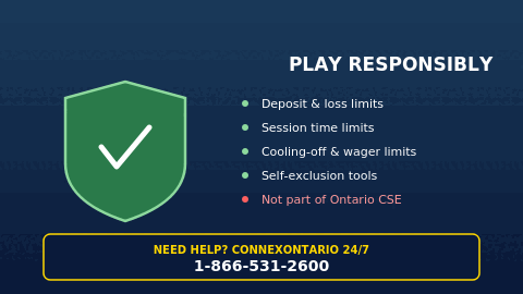 Important limitation: SkyCrown does not participate in Ontario's Centralized Self-Exclusion (CSE) program scheduled to go live in 2026. Players who self-exclude through SkyCrown aren't excluded from regulated Ontario operators, and vice versa. If you're using self-exclusion to manage gambling harm, an AGCO-regulated site provides stronger, cross-platform protection.
